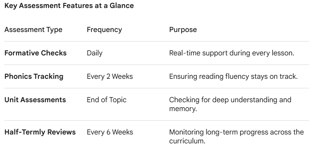 To achieve this, our staff use daily formative assessments—small, informal checks during lessons—to adapt their teaching in the moment. In addition to this daily support, we conduct formal Phonics assessments every two weeks, ensuring that early reading skills are solid and progressing at pace. If children access Accelerated Reader books, they are assessed at the end of each book with a more formal assessment each term. For other subjects, we assess at the end of each unit or half-term to celebrate what the children have mastered and identify any areas for further growth. By assessing in such a timely manner, we ensure that no child is held back and that any misconceptions are addressed immediately. This "assessment for learning" approach means your child is always building on a firm foundation, feeling confident and supported every single day.